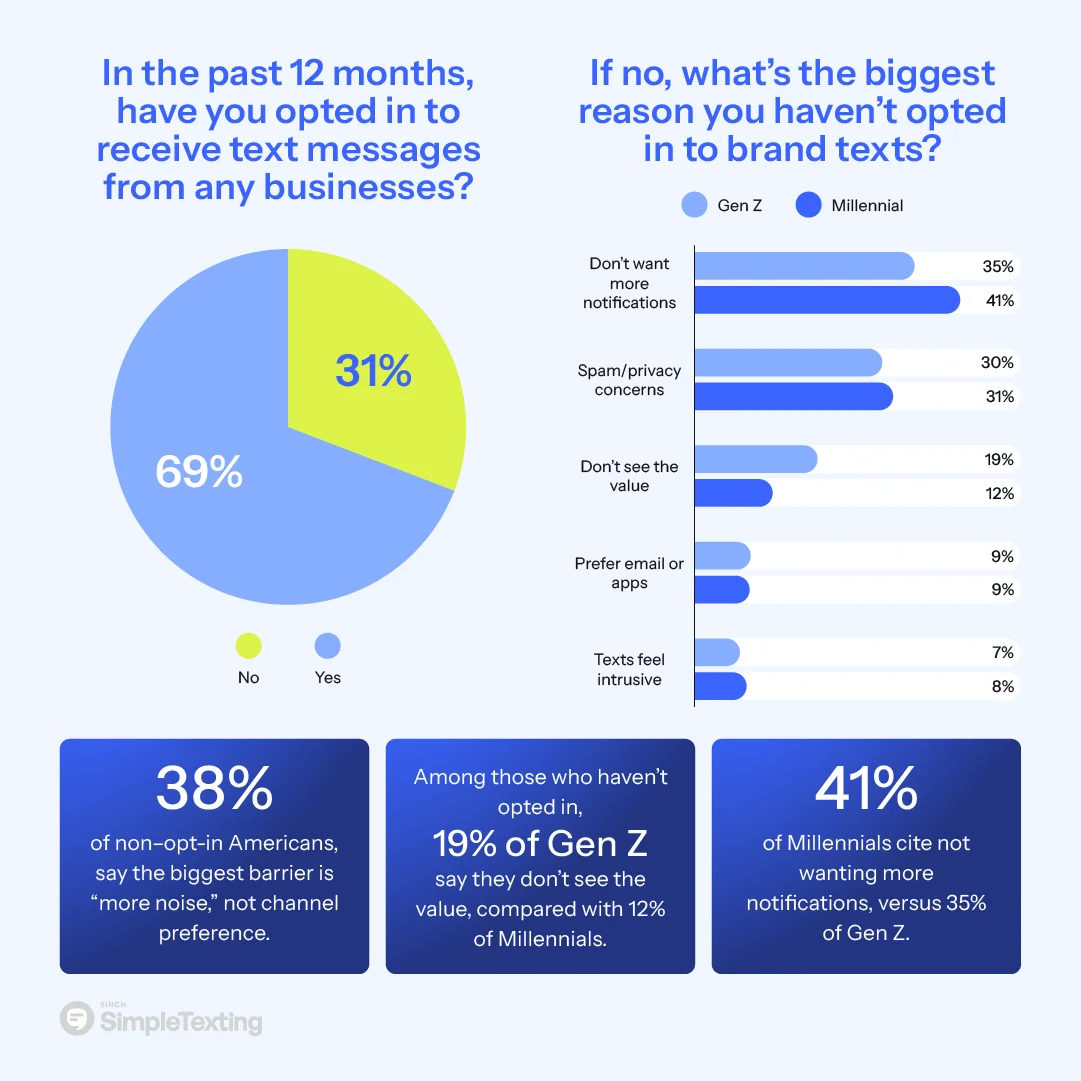 However, for the 31% who haven’t opted in, the reasons are clear: they don’t want more noise. The top blockers are: